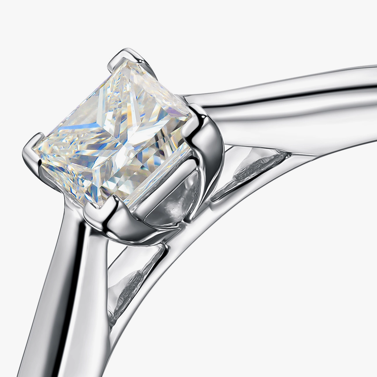 A sophisticated ring in 585 white gold with a diamond in a classic square (princess cut) cut. The laconic design emphasizes the purity and brilliance of the stone, making this jewelry a symbol of elegance and eternal love. Ideal for engagement or as a gift that will remain an immortal classic in your collection.