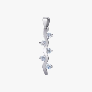 A sophisticated white gold pendant is made in the form of a smooth wavy line, symbolizing movement, balance and feminine elegance. Natural round-cut diamonds are placed along the line, each of which is securely fixed and creates the effect of a slight glow with every movement. The minimalistic, but at the same time expressive design makes this pendant a universal decoration - it will perfectly complement both everyday looks and evening outings. White gold emphasizes the purity and brilliance of diamonds, giving the decoration a modern character. The pendant is a stylish accent for those who appreciate restrained luxury, current forms and impeccable jewelry craftsmanship.