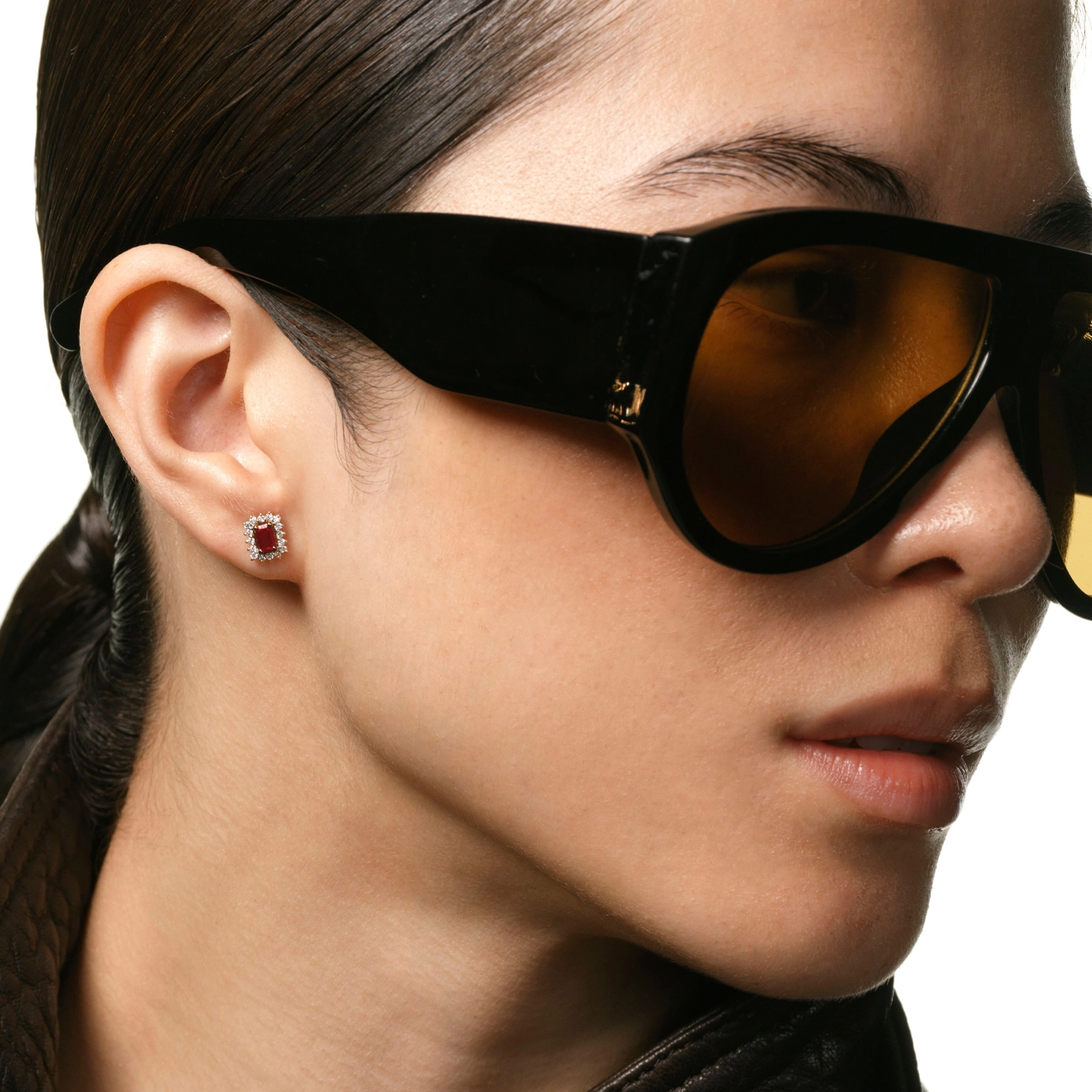 Luxurious earrings in red gold, decorated with central rubies of emerald cut, framed by a scattering of sparkling diamonds. The classic rectangular shape creates an elegant silhouette, and the reliable screw clasp ensures comfortable and secure wearing. These earrings are the perfect combination of noble color, shine and impeccable style, which will emphasize the elegance of any look.