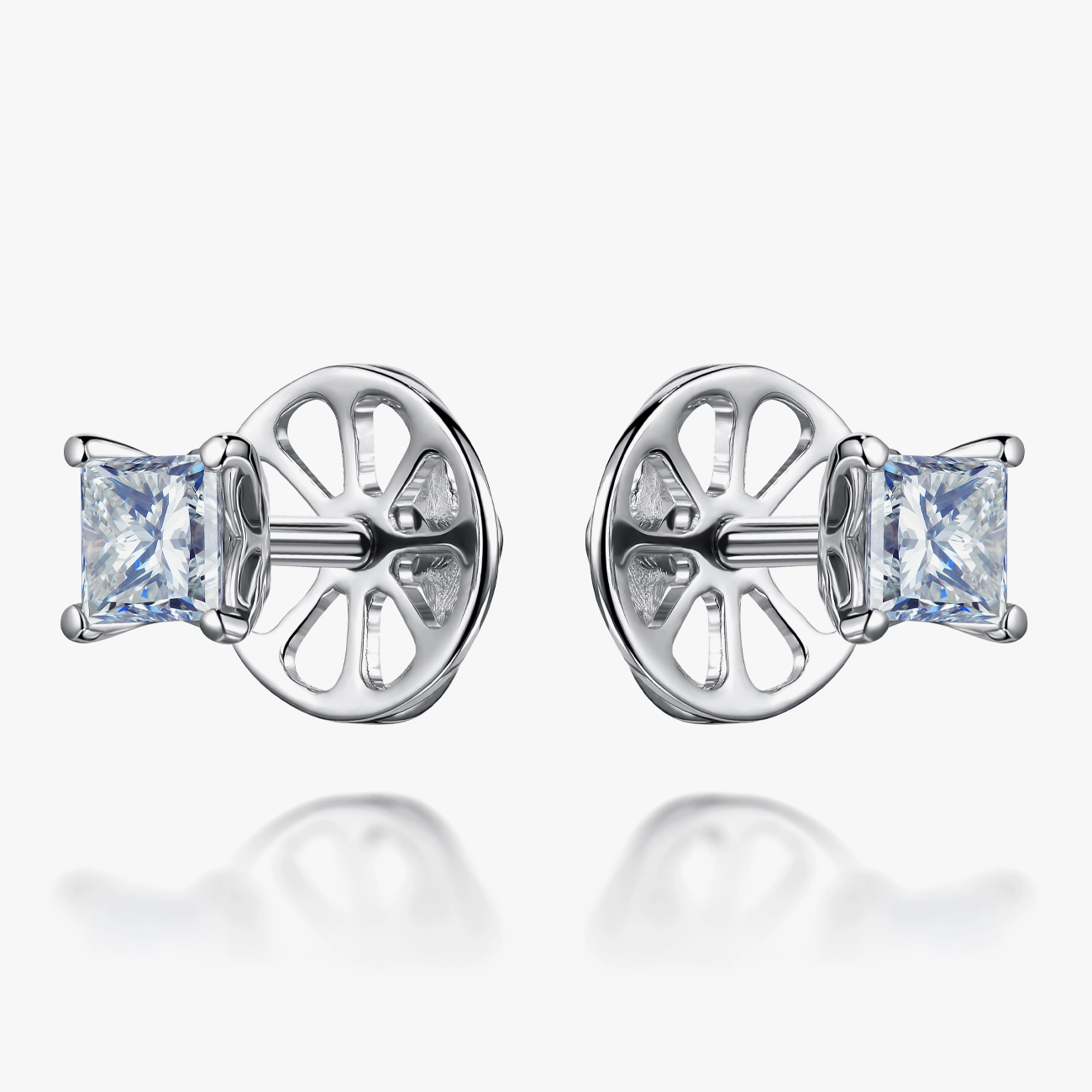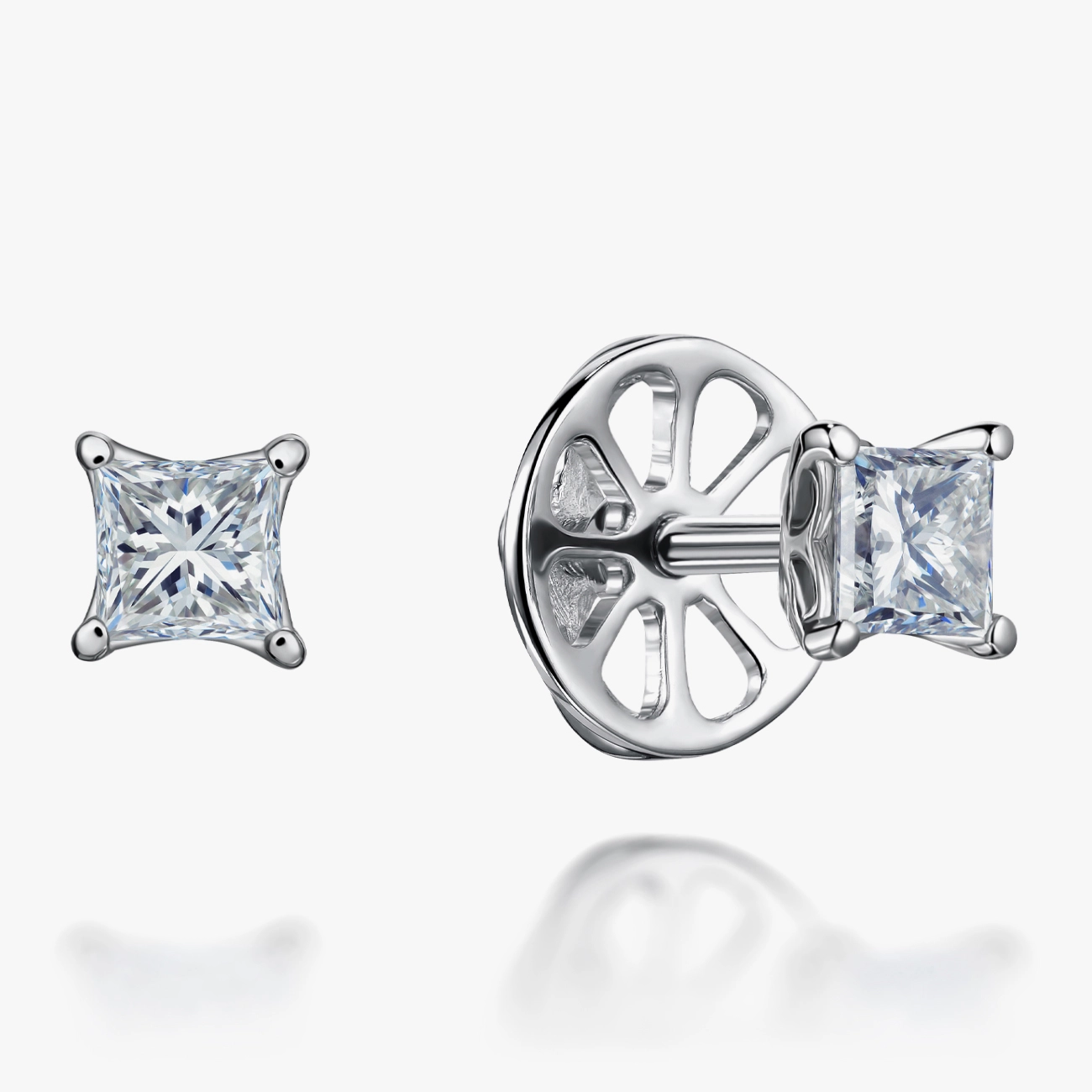 Exquisite white gold stud earrings with Princess cut diamonds are the choice of those who appreciate modern elegance. The geometric shape of the stone emphasizes its impeccable purity and brilliance, and the minimalistic mounting allows the diamond to shine from all sides. Perfect for everyday wear or as an addition to an evening look - a classic that always remains in fashion.
