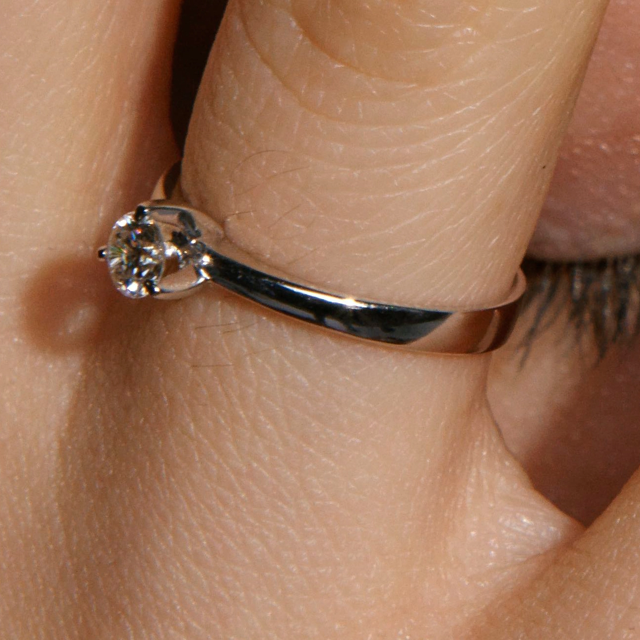 Вишукана каблучка з білого золота з одним центральним діамантом у класичному закріпленні типу "солітер". Лаконічний і елегантний дизайн підкреслює блиск каменю та символізує чистоту почуттів. Ідеальний вибір для заручин або як вишуканий подарунок на особливу подію.