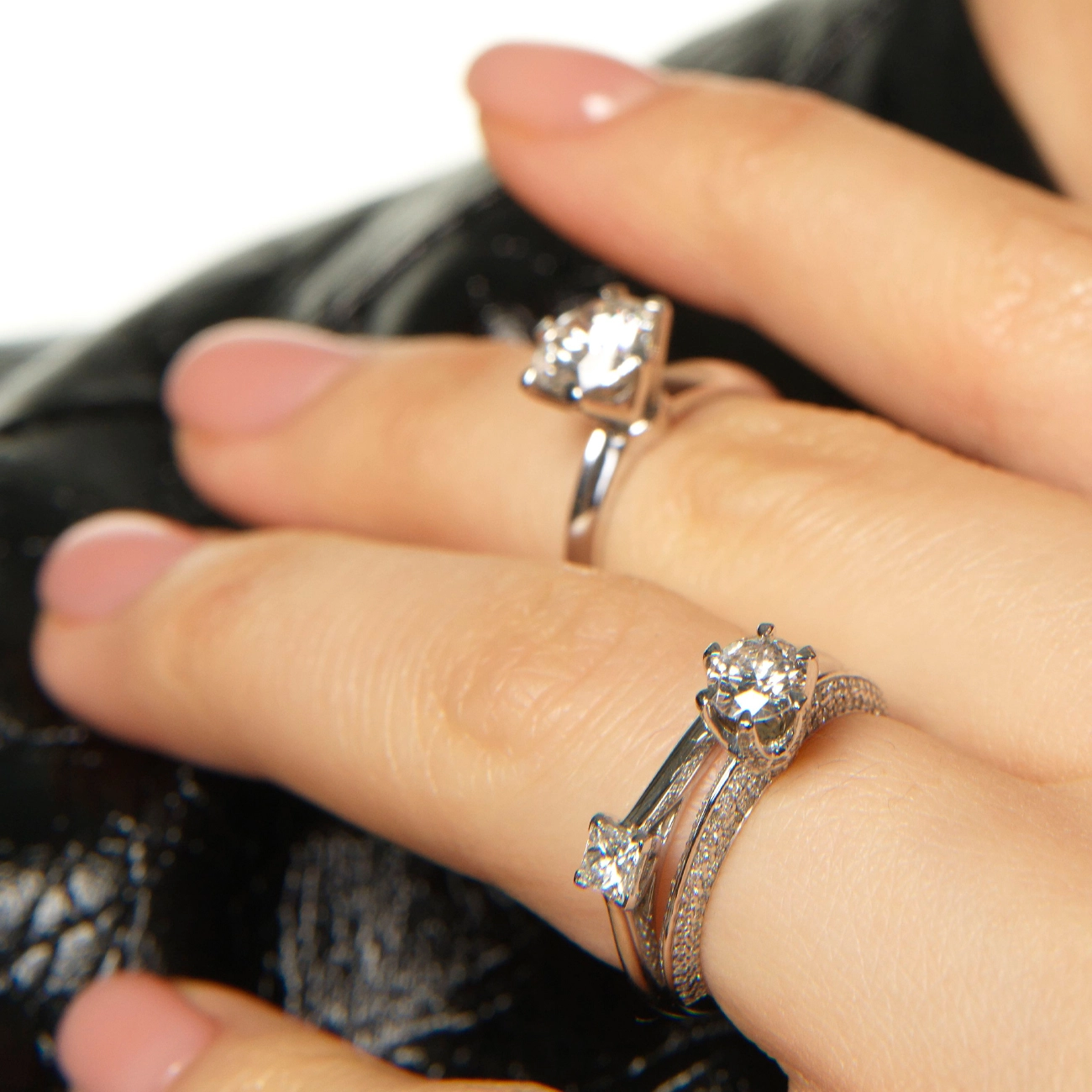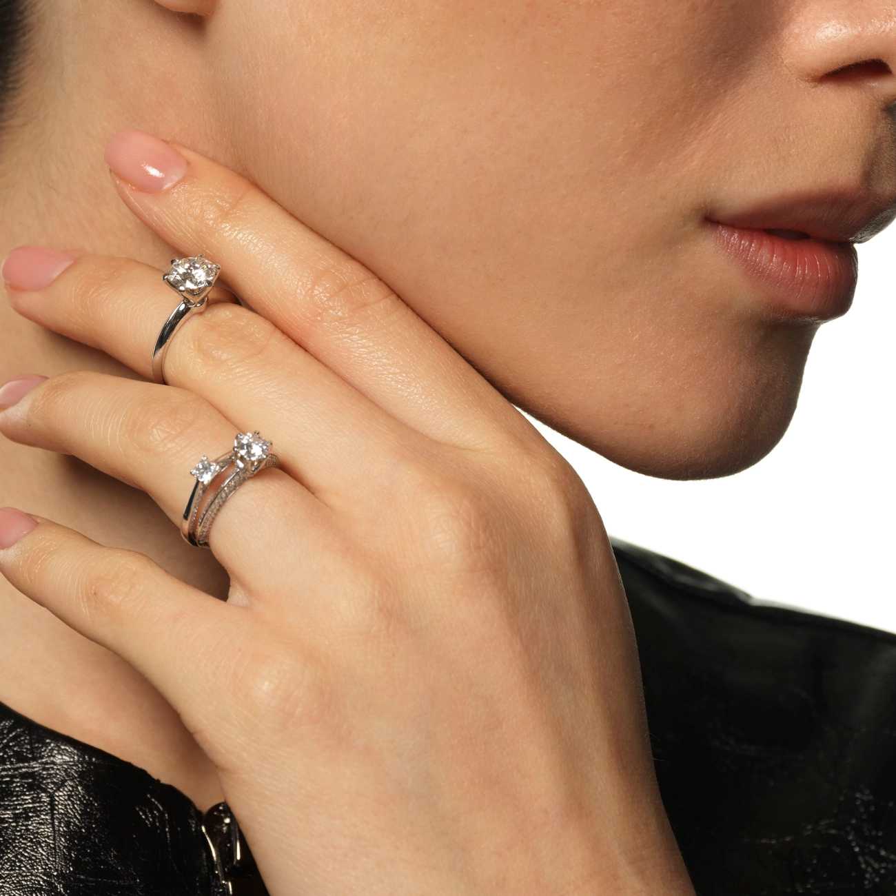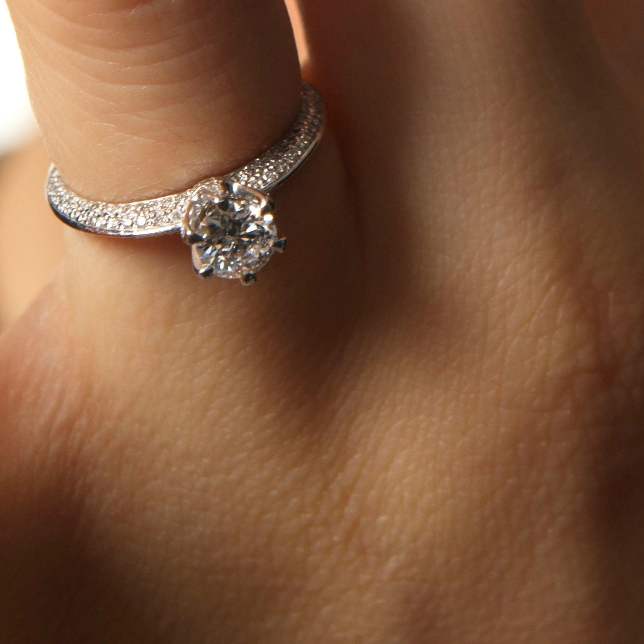 Вишукана каблучка з білого золота, інкрустована натуральними діамантами. Центральний камінь у класичній закріпці «корона» підкреслює чистоту блиску, а бічні діаманти на шинці створюють розкішне сяйво з усіх боків. Ідеальний вибір для освідчення або особливого подарунку, що символізує вічну любов і досконалість — від Kimberli.