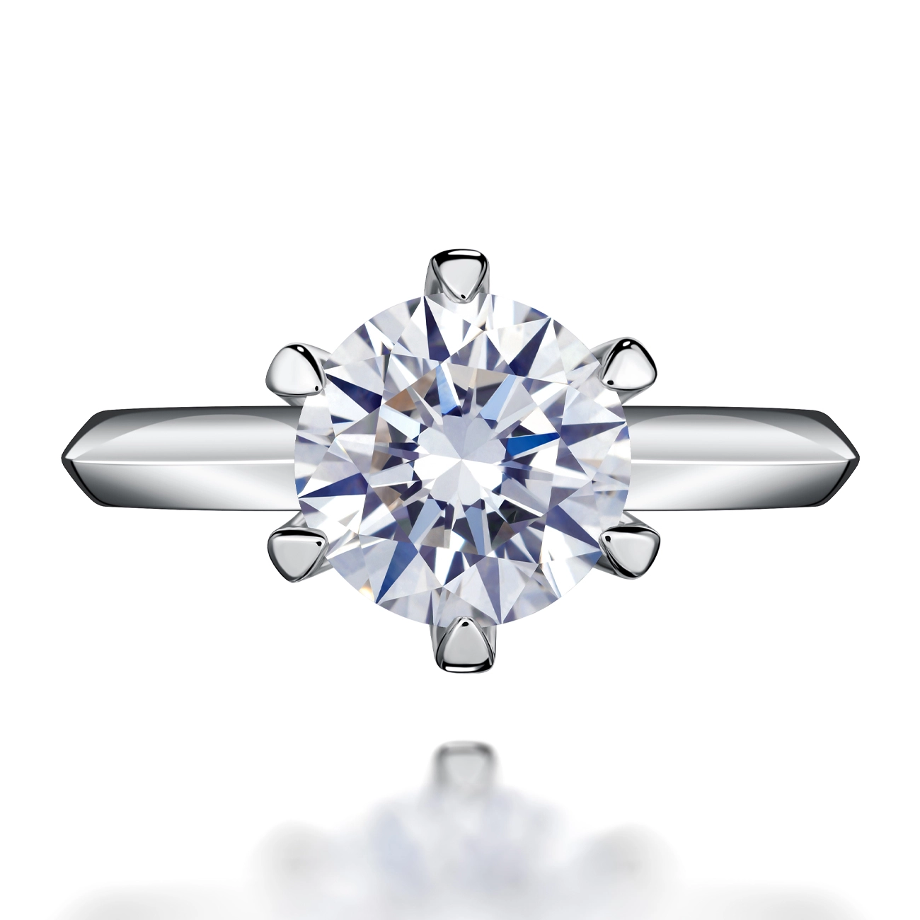 Вишукана каблучка з білого золота з одним діамантом у класичній закріпці з шістьма лапками. Бездоганна форма каменю розкриває всю глибину його блиску, а лаконічний дизайн підкреслює елегантність і витонченість прикраси. Ідеальний вибір для заручин або особливого подарунка від Kimberli.