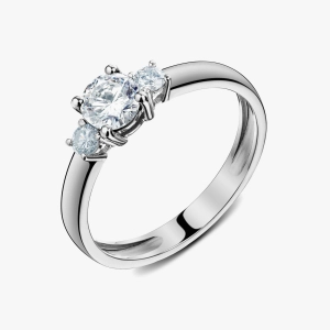 Ця елегантна каблучка з білого золота прикрашена трьома діамантами — символами минулого, теперішнього та майбутнього. Центральний камінь, більший за бічні, привертає увагу своєю яскравістю та чистотою, створюючи ідеальний акцент. Ідеальний вибір для заручин, ювілею або як жест справжніх почуттів. Втілення класики, яка ніколи не втрачає актуальності.