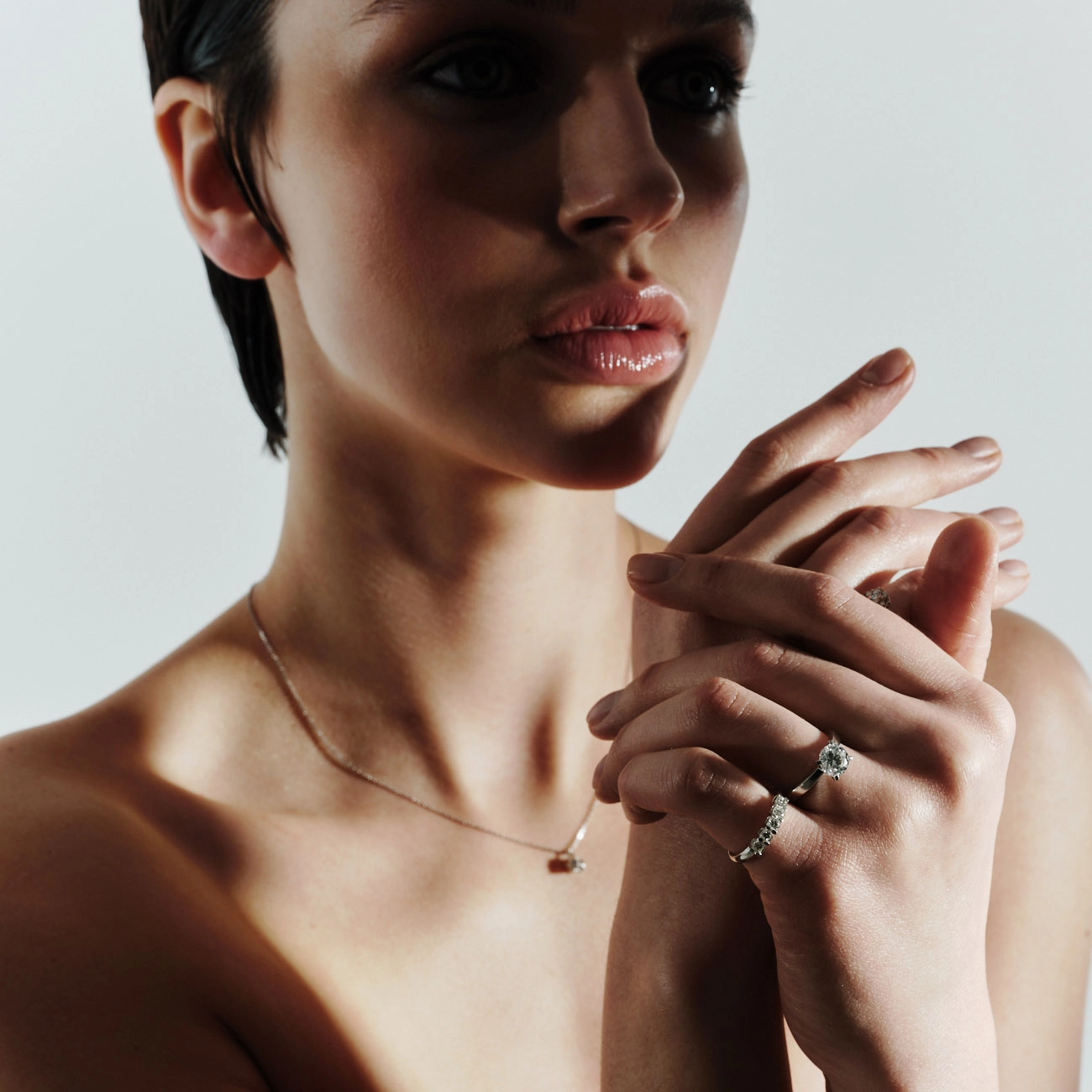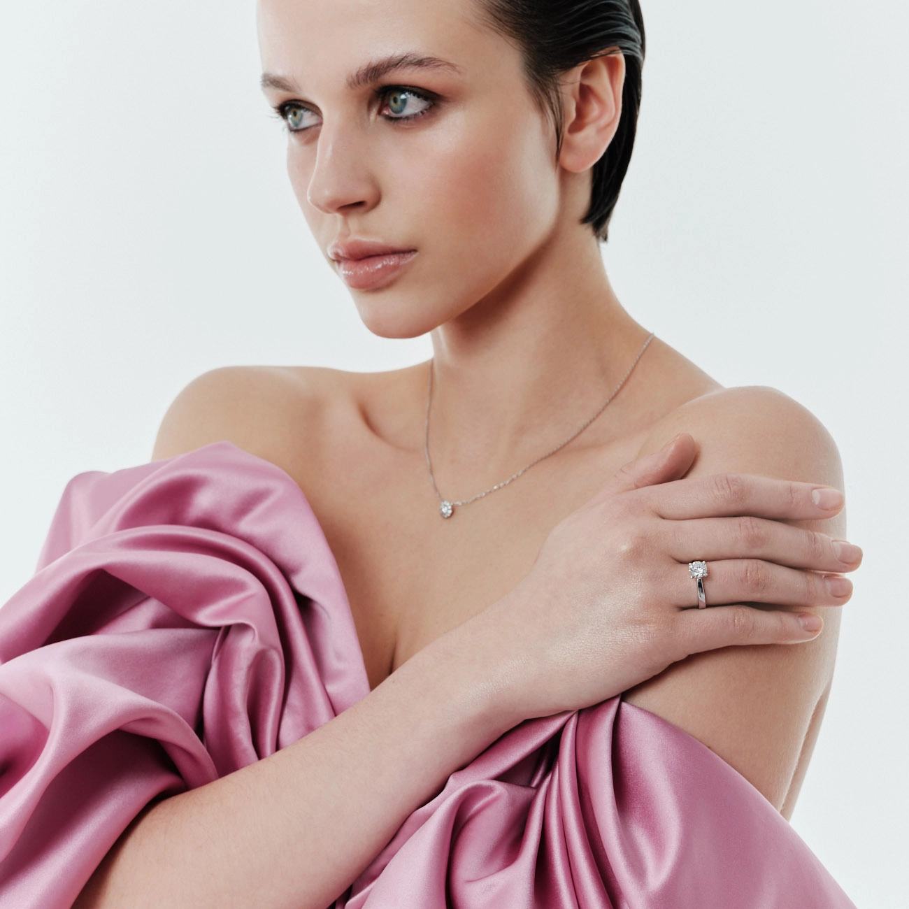 Роскошное кольцо из белого золота, инкрустированное центральным бриллиантом весом 1,5 карат, обрамленным россыпью более мелких камней. Изящный дизайн подчеркивает блеск и глубину сияния бриллианта, создавая эффект настоящего шедевра ювелирного искусства. Идеальный выбор для помолвки или в качестве подарка, символизирующего любовь, роскошь и вечность от Kimberli.
