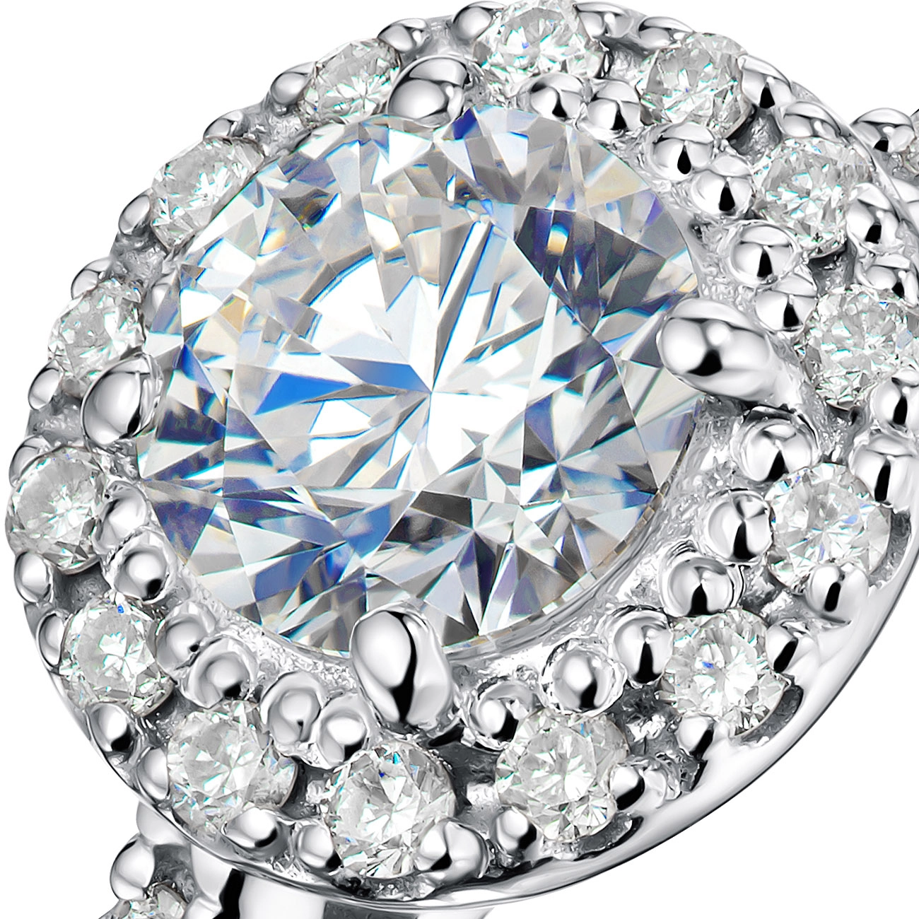 Кольцо с бриллиантом в белом золоте с ореолом - К100322