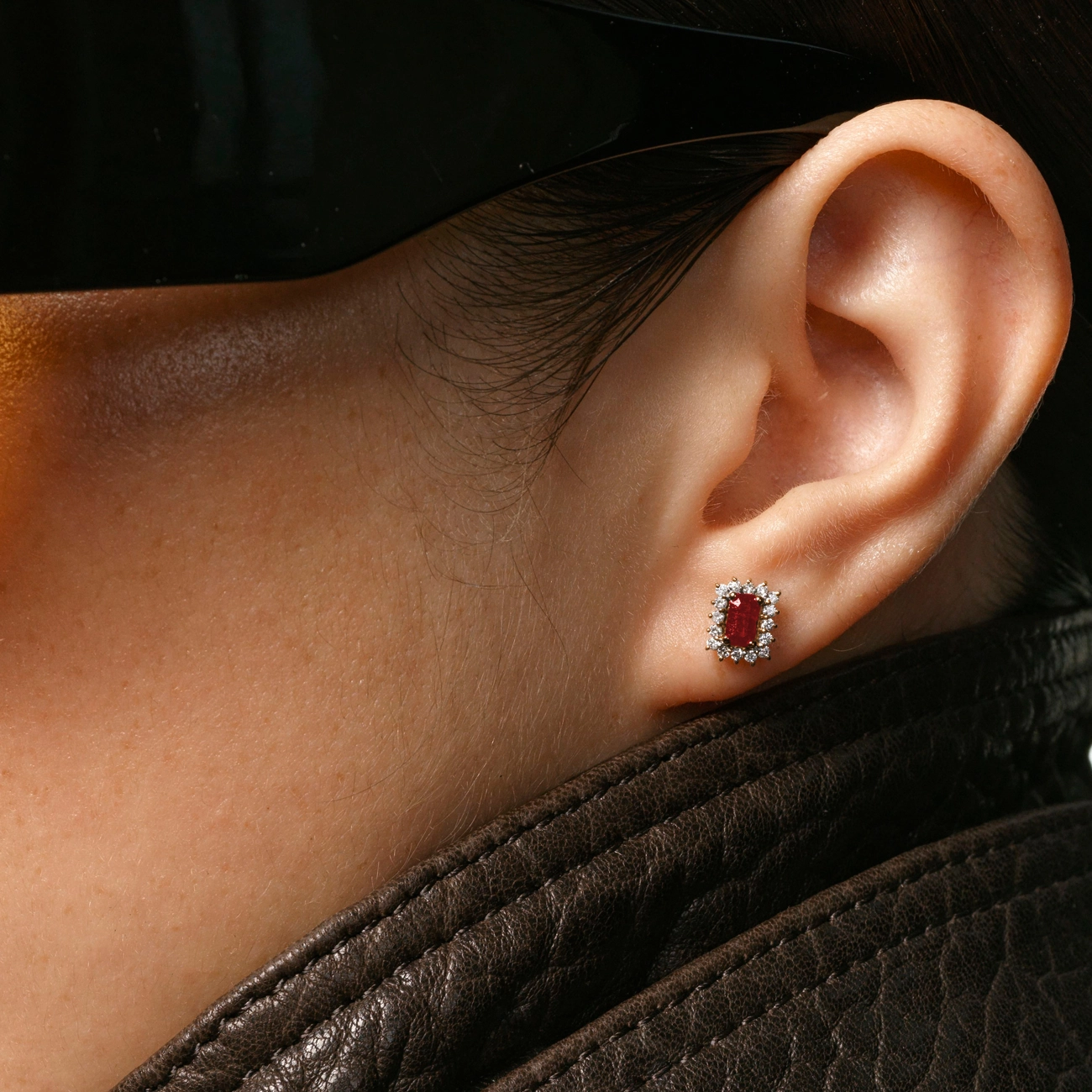 Роскошные серьги из красного золота, украшенные центральными рубинами изумрудной огранки, обрамленными россыпью блестящих бриллиантов. Классическая прямоугольная форма создает изысканный силуэт, а надежная винтовая застежка обеспечивает комфортное и безопасное ношение. Эти серьги – идеальное сочетание благородного цвета, блеска и безупречного стиля, что подчеркнет элегантность любого образа.