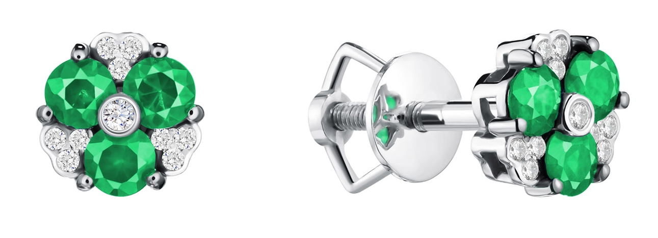 Яка жінка може встояти перед царственим сяйвом смарагдів? Цей дорогоцінний камінь яскраво-зеленого кольору чудово контрастує із золотом, створюючи ефектний та стильний образ. Він вважається символом мудрості, приносить удачу, покращує зір, допомагає налагодити особисті стосунки. Сережки зі смарагдами мають попит у жінок незалежно від віку, вносять в образ нотку шарму та вишуканості. Особливо красиво така прикраса виглядає на зеленооких шатенках і рудоволосих його власницях.